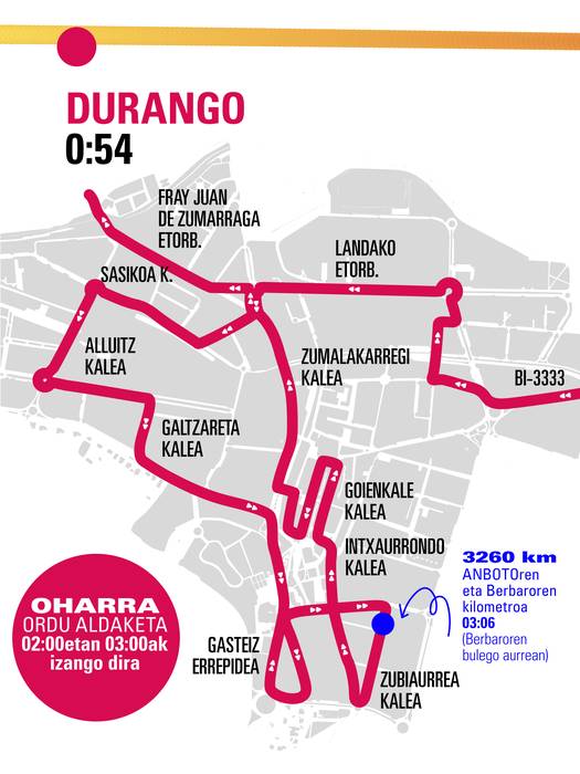 | DURANGO | Landako etorbidea eta Frantzisko Ibarra biribilgunean | 1:39:43 |