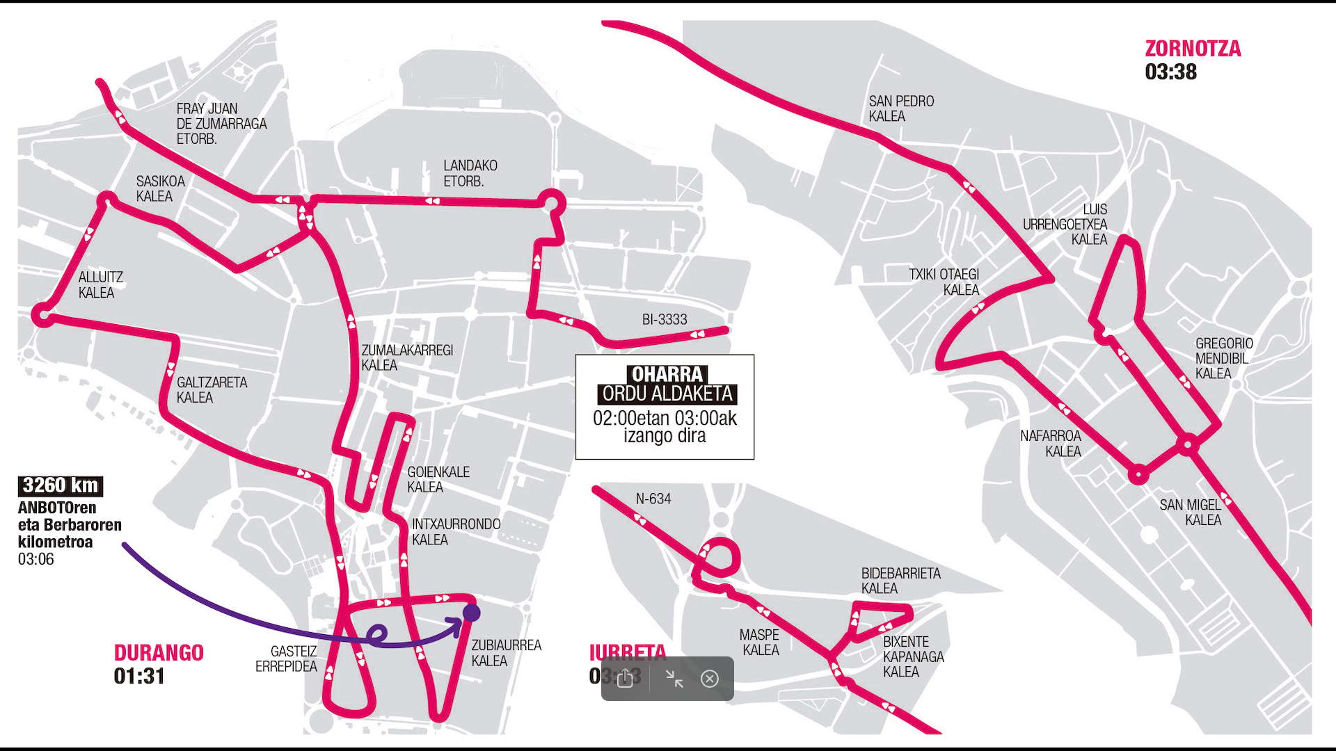| ZORNOTZA | San Pedro kalea eta Luis Urrengoetxea | 4:18:32 |