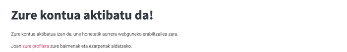4. Mezu bat jasoko duzu helbide elektronikoan. Onartu bertara ailegatuko zaizun lotura, eta horrekin, kito! Zure kontua aktibatuta egongo da.