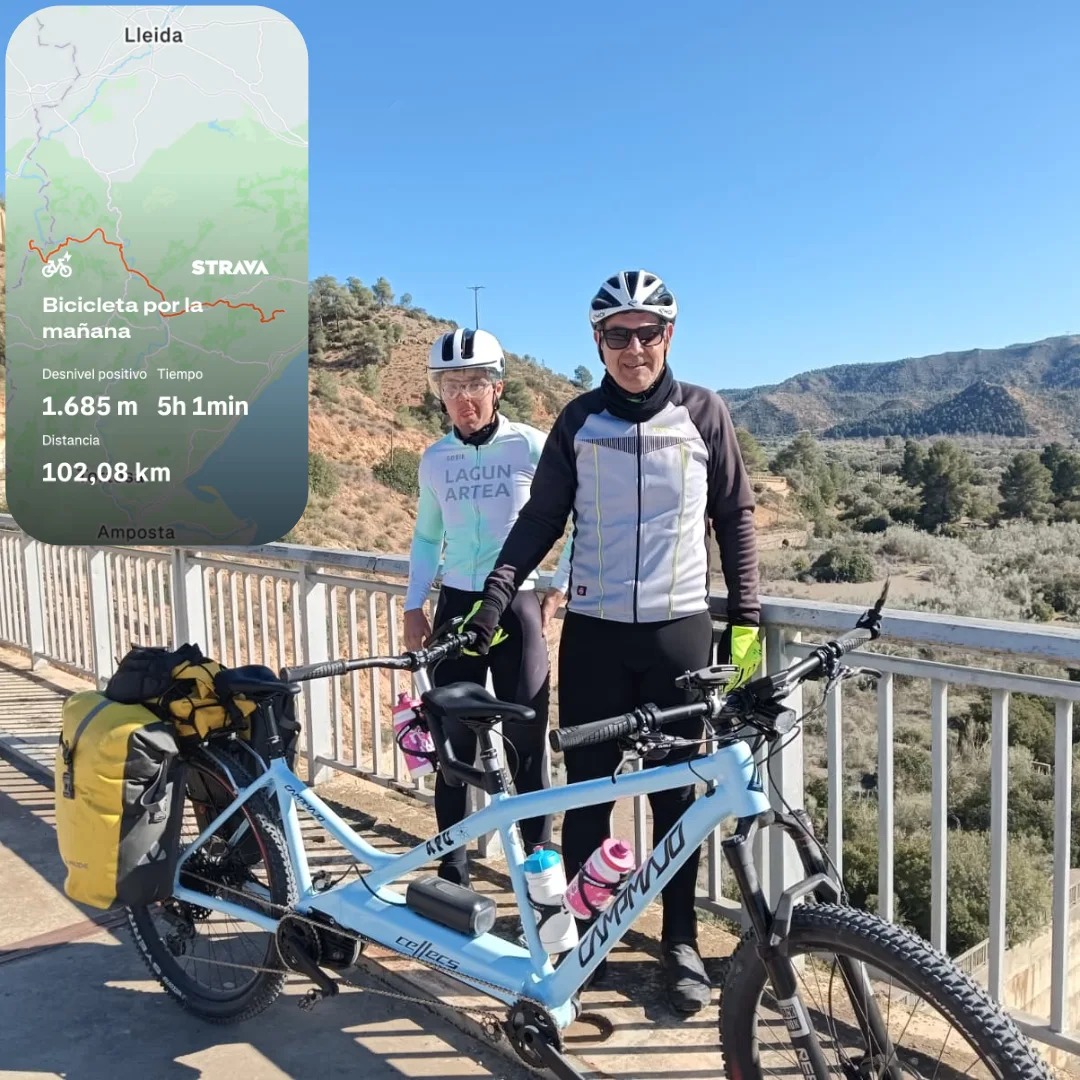 Joni kirola egitea izugarri gustatzen zaionez, baina gaixotasunak nahi bezala praktikatzea eragozten dionez, gazteak familiako kideekin irteten du tandem bizikletan. "Batzuetan aitarekin irteten du, eta beste batzuetan Gorka anaiarekin. Aurrean doanak gidatzen du bidaia, eta Jonek indar biziz eragiten die pedalei. Orain arte tandem arrunt batekin ibili dira, baina duela gutxi elektriko bat enkargatu dute trabesia luzeagoak egiteko. Katalunian fabrikatu dute ibilgailua, Perafort herrian. Jon, aita eta ama joan dira bertara, eta tandem elektriko erosi berrian dabiltza handik honako bidea etapaka egiten. Aita-semeak tandem elektrikoan, eta ama ondoan, bizikleta arrunt batean", azaldu dute familiako lagunek.